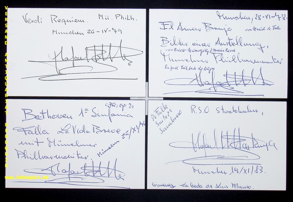 FRÜHBECK DE BURGOS, 10 eigenhändig signierte und datierte Autogrammkarten. Mit