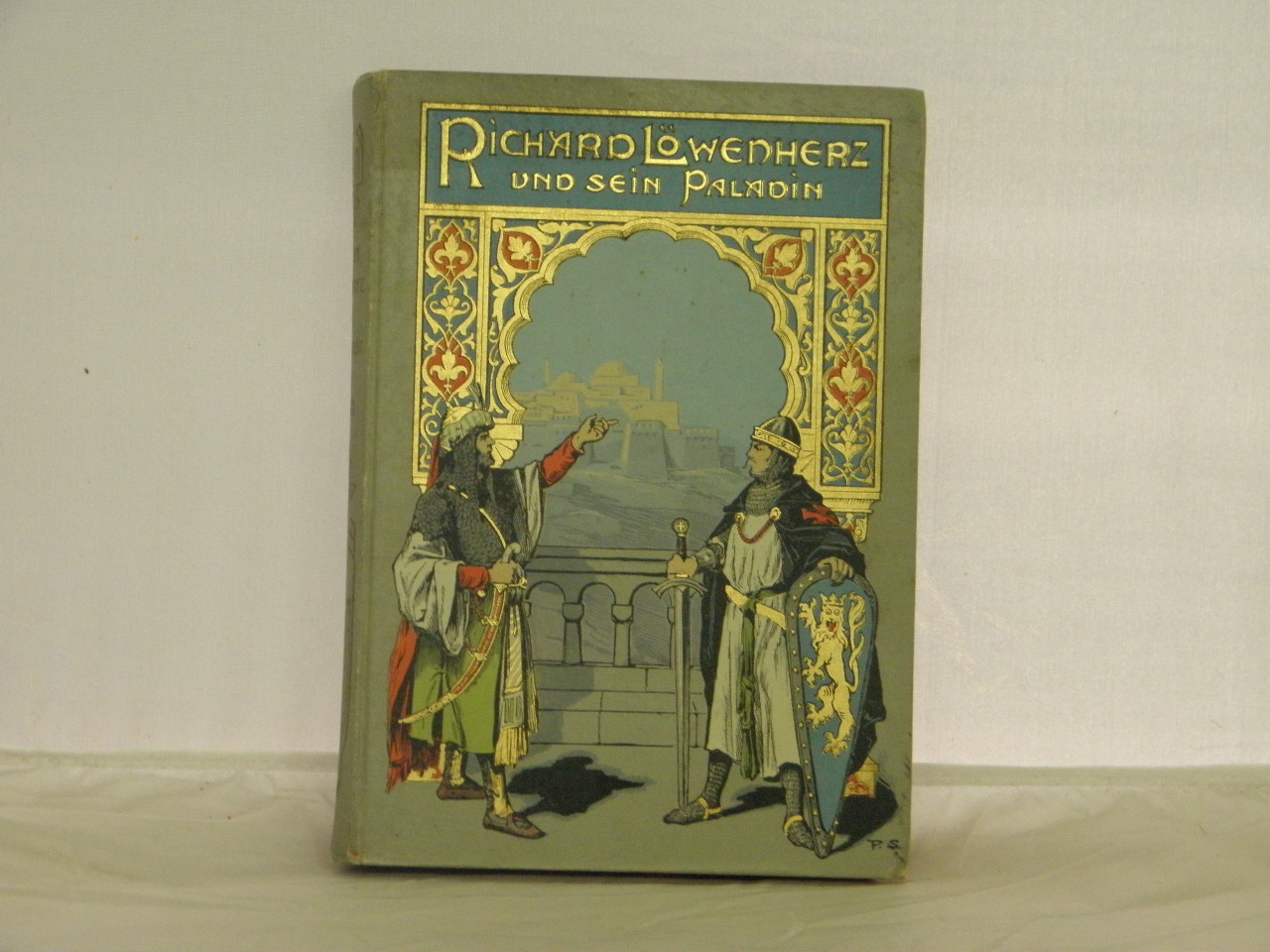 ROTH, Richard: Richard Löwenherz und sein Paladin. Eine Erzählung für die Jugend aus Palästinas Vergangenheit und Gegenwart. Stuttgart (Levy & Müller), (1905). Gr. 8°. VIII, 267 (5) S. mit 8 teils farb. Einschaltbildern von R. Schweiitzer. farb. ill. OLn. WasV, gutes Ex. EA. Klotz 6016/31.