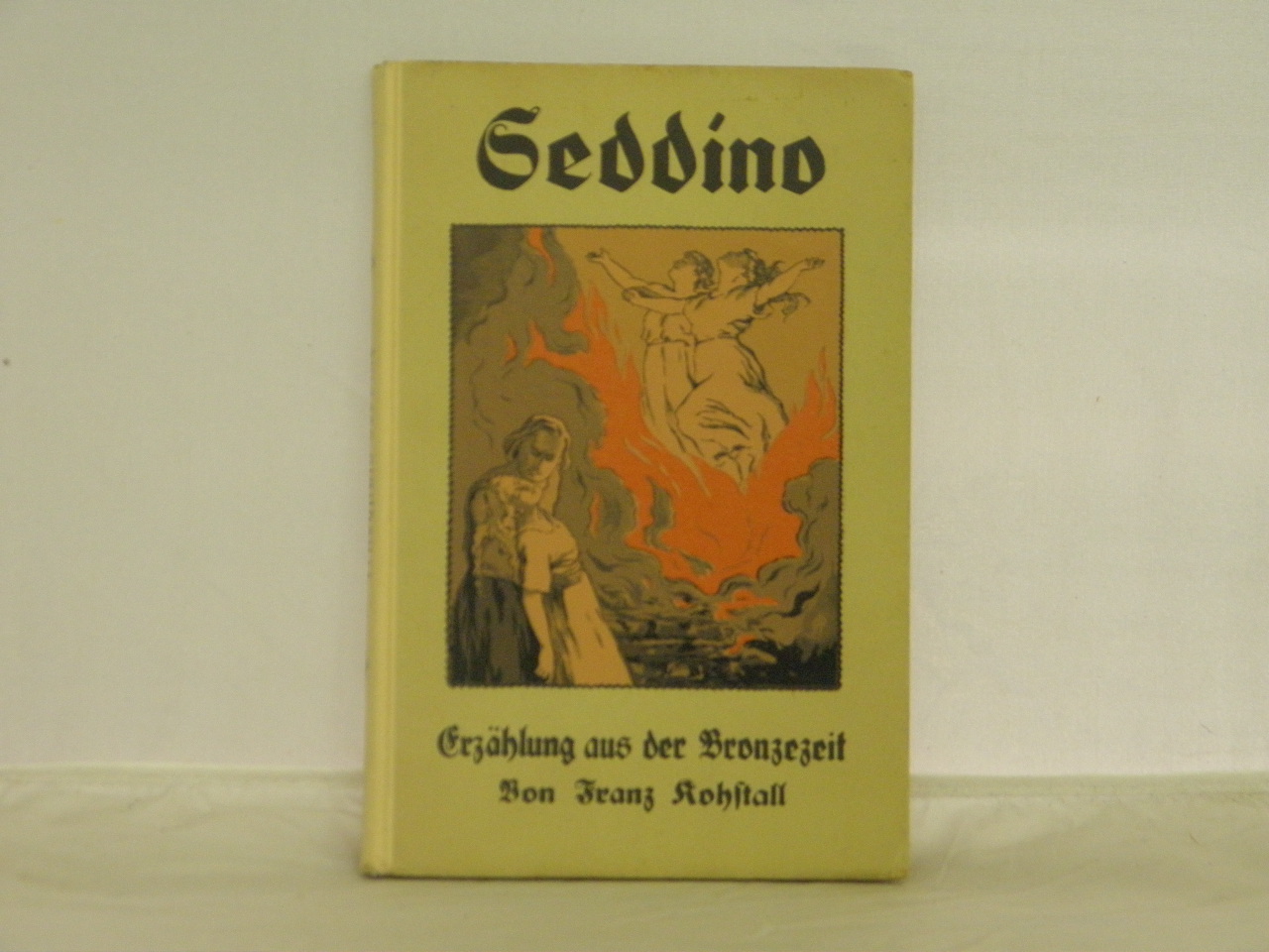 KOHSTALL, Franz: Seddino. Roman aus der deutschen Bronzezeit. Reutlingen (Enßlin & Laiblin), (1926). Gr. 8°. 128 S. mit 1 Farbendruckbild als Titel und zahlr. Textabb. farb. ill. OPbn. gutes Ex. EA mit einer 4zeiigen eigenhändigen datierten Verfasserwidmung auf Vorsatz.