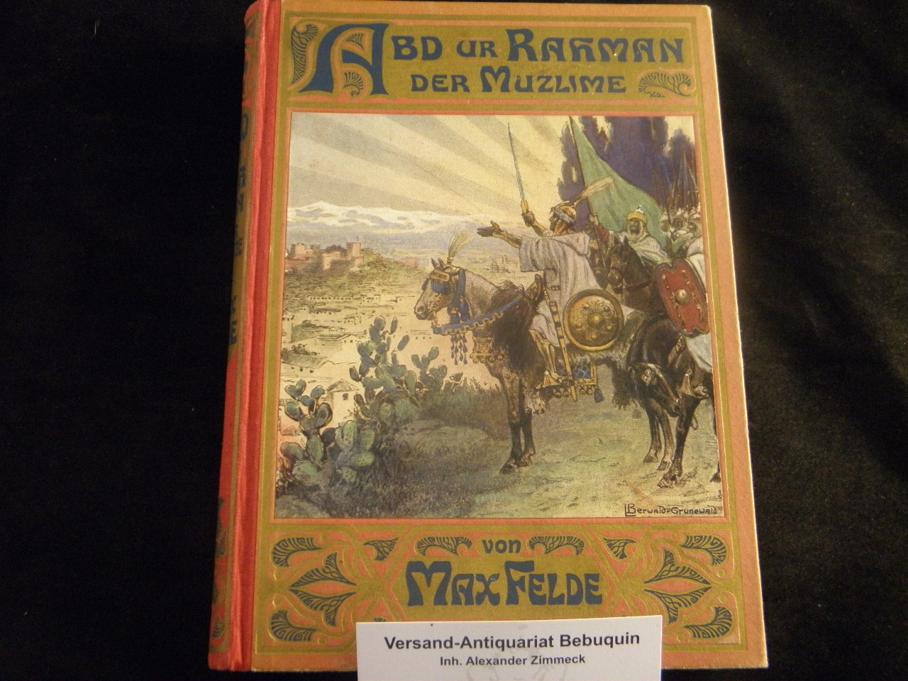 FELDE, Max: Abd ur Rahman der Muzlime. Eine Erzählung aus den letzten Tagen von Granada. 10. Aufl. Stuttgart (Union), (1924). kl. 8°. III, 271 (12) S. mit 23 Abb. von Ludwig Berwald. ill. OHLn mit mont. Farbbild. feines Ex. Klotz 1424/1.