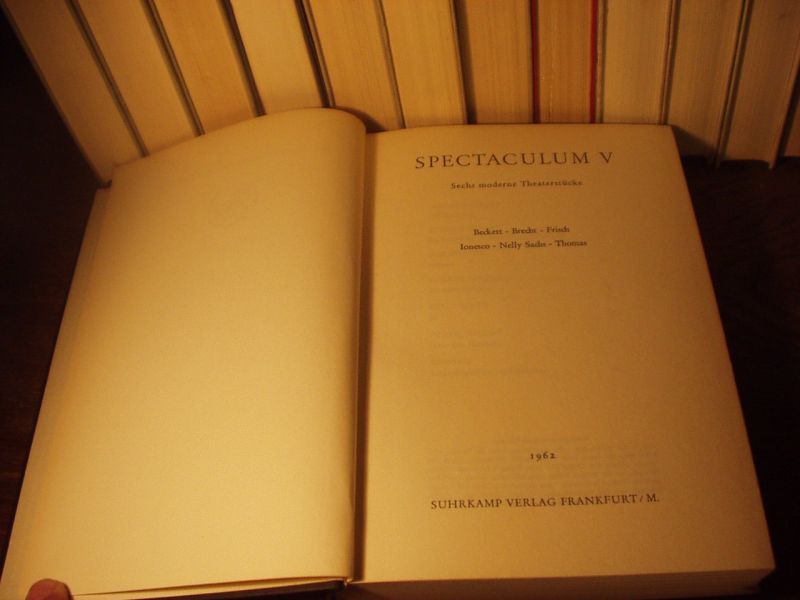 BECKETT, Samuel: Glückliche Tage. D.v. Elmar Tophoven. In: Spectaculum 5. Frankfurt (Suhrkamp), 1962. Gr. 8°. 26 S. OPb. dt. EA Knowlson 1050. Außerdem in diesem Band enthalten Texte von Brecht, Frisch, Nelly Sachs u.a.
