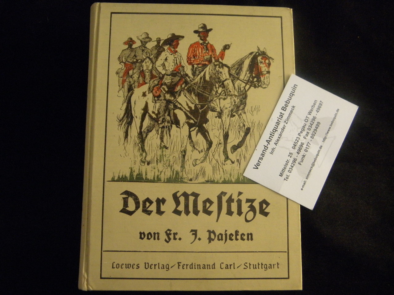 PAJEKEN, Friedrich J.: Der Mestize. Und drei andere Erzählungen aus Nord- und Südamerika. 3. Aufl. Stuttgart (Effenberger), (1925). V, 153 (1) S. mit 4 Tonbildern von Alb. Richter. farb. ill. OLn. feines Ex. Klotz 5284/15.
