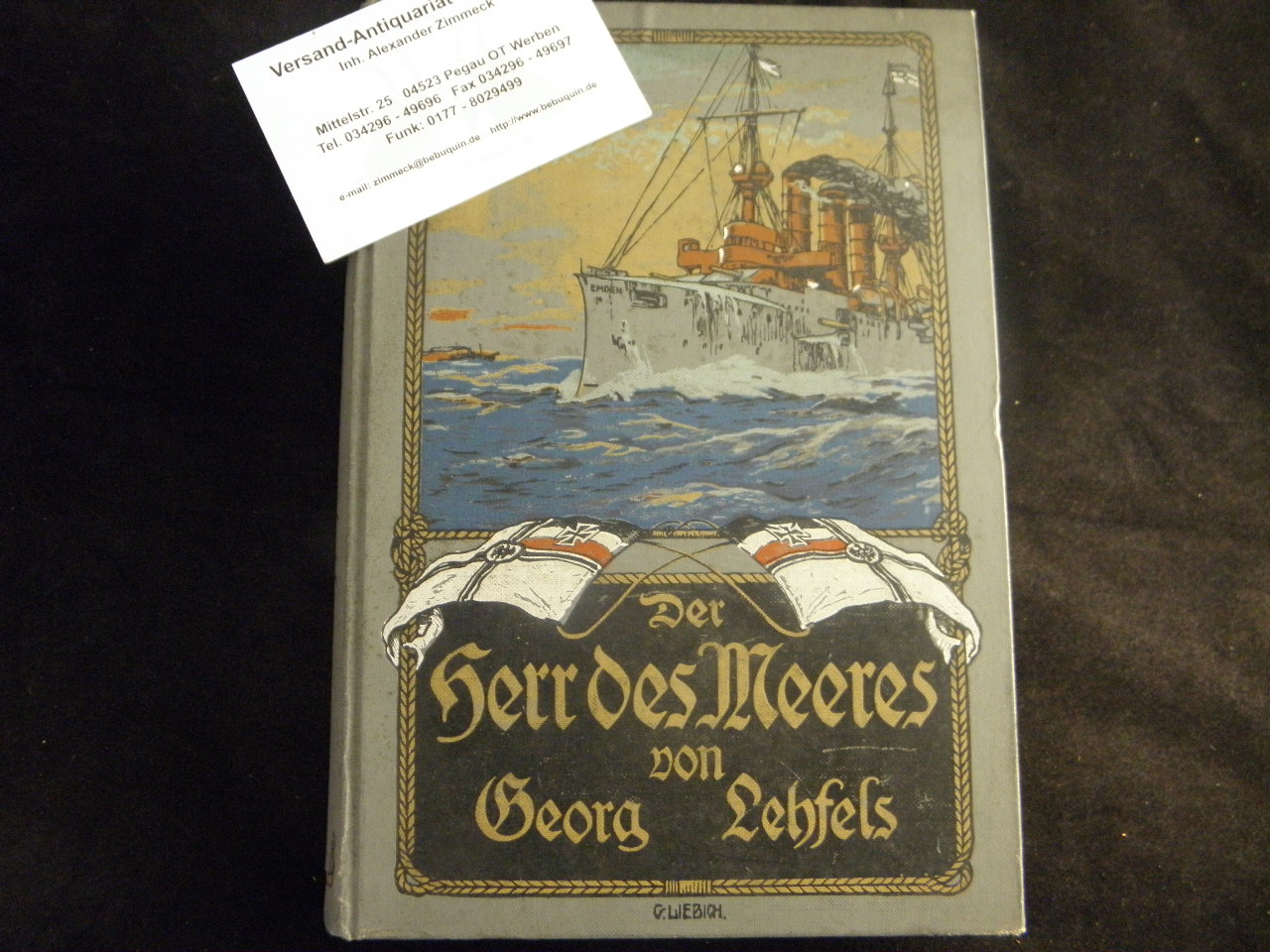 LEHFELS, Georg: Der Herr des Meeres. Fahrten und Abenteuer der „Emden“ im Weltkrieg. Bielefeld (V&K), 1915. 2 Bl., 290 S. mit 6 Einschaltbildern von Curt Liebich. farb. ill. OLn. feines Ex. EA. Klotz 3987/1.