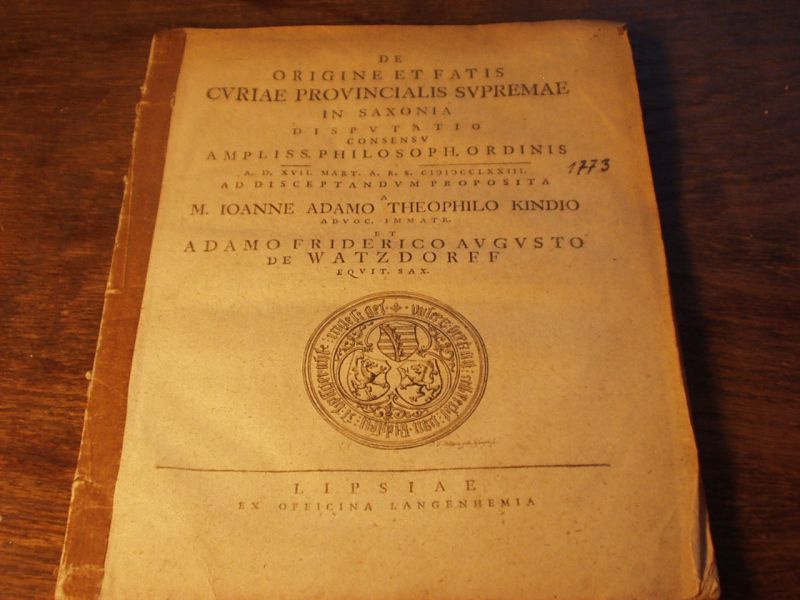 KIND, De origine at fatis Curiae provincialis supremae in Saxonia disputatio.