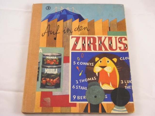 AUFSTELLBILDERBÜCHER.– AUF IN DEN ZIRKUS.– Hamburg (Carlsen), 1964. Gr. 8°. 6 aufklappbare Bühnen mit farb. beweglichen Vorrichtungen farb. ill. OHLn. Teils lose, nicht sicher ob jede Mechanik einwandfrei funktioniert. seltene EA.