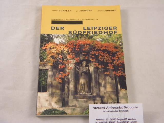 LEIPZIG.– LÖFFLER, Katrin + SCHÖPA, Iris + SPRINZ, Heidrun: Der Leipziger Südfriedhof. Geschichte / Grabstätten / Grabdenkmäler. Leipzig (Edition), 2000. 192 S. mit zahlr. teils farb. Bildern. farb. ill. OKart. tadellos. EA.