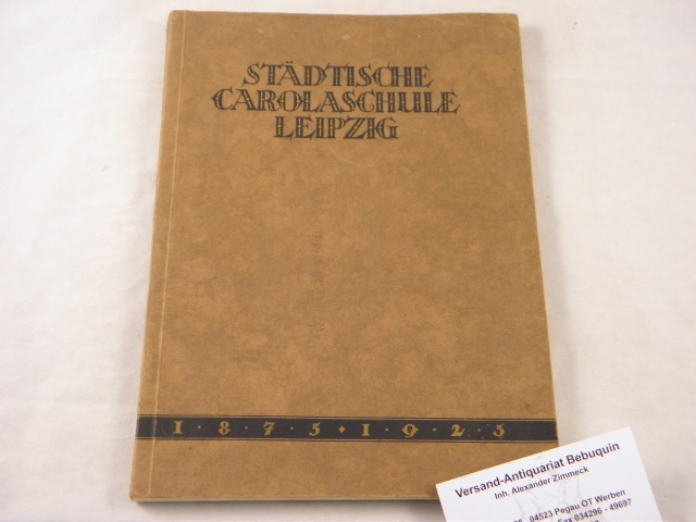 LEIPZIG.– FESTSCHRIFT ZUR FEIER DES FÜNFZIGJÄHRIGEN BESTEHENS DER STÄDTISCHEN CAROLASCHULE ZU LEIPZIG.– 1. Oktober 1875 – 1925. Leipzig (Röder), 1925. Gr. 8°. 90 (2) S. + Bildtafeln. OKart. seltene EA.