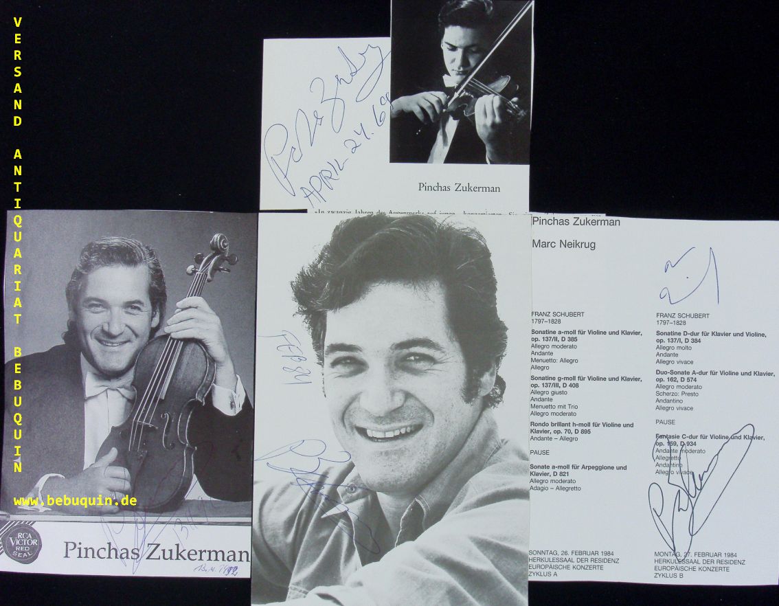 ZUKERMAN, Pinchas (Violinist): 4 eigenhändig signierte und datierte Programmheftseite. München (Herkulessaal), 1969 – 1992. 21 x 14 cm. 4 Bl. Pinchas Zukerman (* 16. Juli 1948 in Tel Aviv) ist ein israelischer Violinist, Bratschist und Dirigent. (Wikipedia)