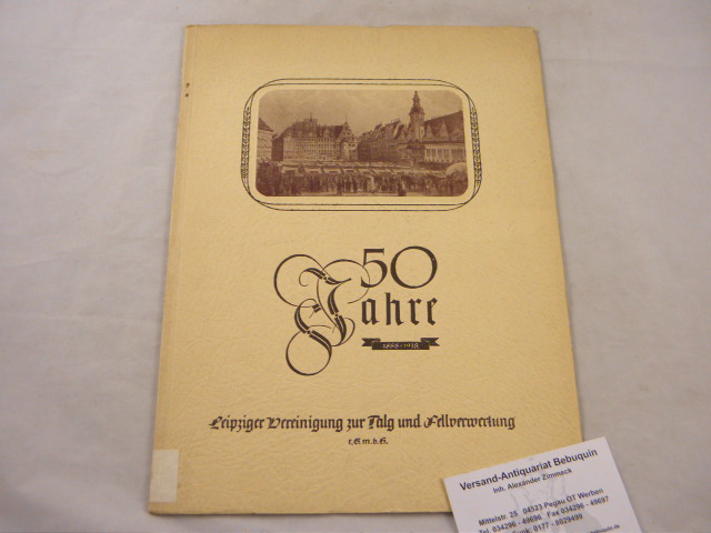 KÜRSCHNER.– 50 JAHRE LEIPZIGER VEREINIGUNG ZUR TALG- UND FELLVERWERTUNG e.GmbH.– 1888 – 1938. Berlin (Hoppenstedt), 1938. 4°. 24 S. mit zahlr. fotografischen Bildern aus der Produktion sowie 1 Karte des Arbeitsbereichs und 2 x das Begleitschreiben inliegend. OKart mit mont. Bild. NaV, feines Ex. EA. Ein Zeitdokument von größter Seltenheit. Das ehemalige Pelzhandelszentrum Leipziger Brühl hatte bis zum Zweiten Weltkrieg den Ruf als „Weltstraße der Pelze“. Das in Leipzig um die Straße Brühl gelegene Rauchwaren- und Pelzwaren-Großhandelsvierte war bis 1933 der weltbedeutendste Rauchwaren-Großhandelsplatz. (Wikipedia)