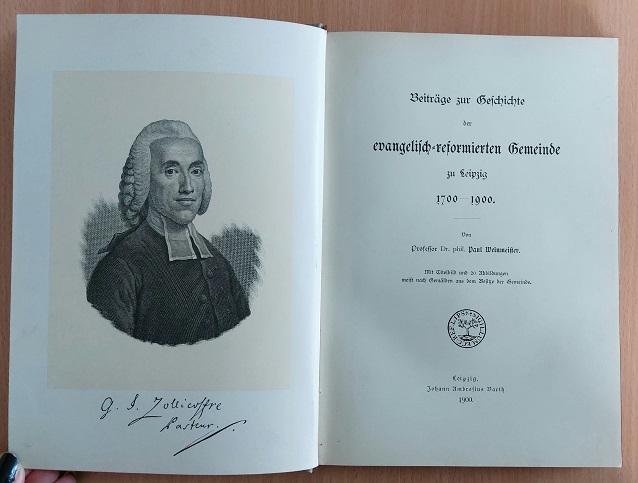 LEIPZIG.– WEINMEISTER, Paul: Beiträge zur Geschichte der evangelisch-reformierten Gemeinde zu Leipzig 1700 – 1900. Leipzig (Barth), 1900. VIII, 210 S. mit Titelbild und 20 Abb. OLn. NaT, feines Ex.