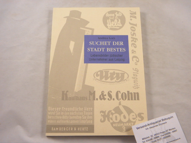 LEIPZIG.– LORZ, Andrea: Suchet der Stadt Bestes. Lebensbilder jüdischer Unternehmer aus Leipzig. Leipzig (Pro), 1996. Gr. 8°. 152 S. mit zahlr. Bildern. ill. OKart. tadellos. EA.