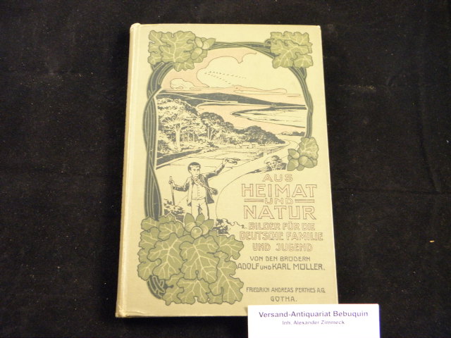 ZOOLOGIE.– MÜLLER, Adolf + Karl: Aus Heimat und Natur. Bilder für die deutsceh Familie und Jugend. 2. Aufl. Gotha (Perthes), 1908. VI, 204 S. mit 1 farblithographische Titelbild und 28 Textbildern. farb. ill. OLn. feines Ex.