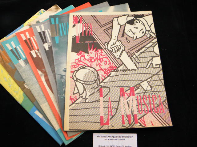 JAZZ.– VIVA LA MUSICA.– Periodique d’Information de l’AMR Association pour la musique improvisée. Nr. 97,104,105,106,111,112, 113 7 Hefte. Genf, 1987-89. 4°. jeweils 28 S. mit zahlr. Bidlern. ill. OKart. 7 Hefte für zusammen