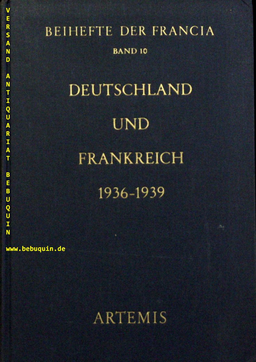 HILDEBRAND, Klaus + WERNER, Karl Ferdinand: (Hrsg.) Deutschland und Frankreich 1936 – 1939. 15. Deutsch-französisches Historikerkolloquium des Deutschen Historischen Instituts Berlin. München (Artemis), 1981. 719 S. OLn. Ordnungsgemäß aus Bundeswehrbeständen ausgesondertes Bibliotheksexemplar (Rückenschild, Stempel). Ecken leicht bstoßen. = Beihefte der Francia, Bd. 10. EA.