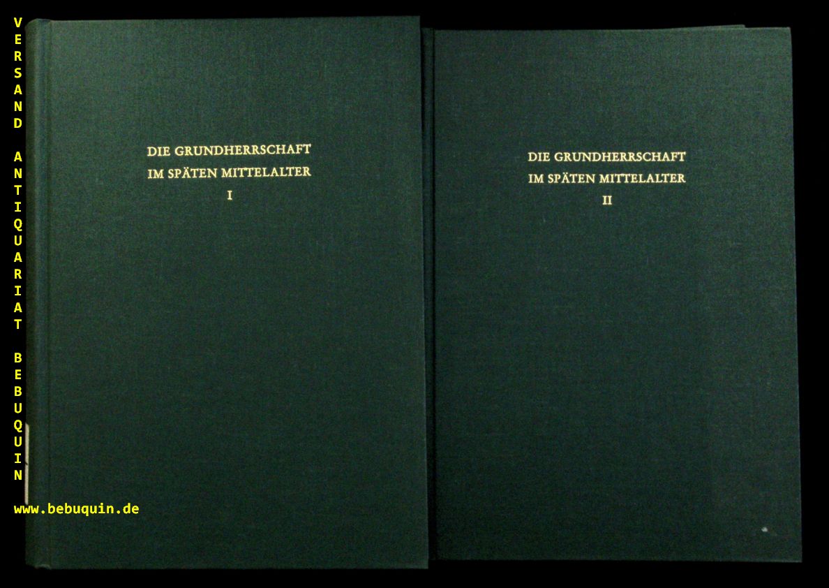 MITTELALTER.– PATZE, Hans: (Hrsg). Die Grundherrschaft im späten Mittelalter. 2 Bände. Sigmaringen (Thorbecke), 1983. Gr. 8°. 604 S. mit Abb. + 3 Karten + 404 S. mit Abb. OLn. Ordnungsgemäß aus Bundeswehrbeständen ausgesondertes Bibliotheksexemplar (Rückenschild, Stempel). = Vorträge und Forschungen, Bd. XXVII.