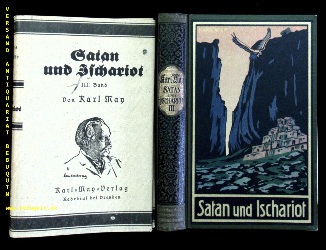 MAY, Karl: Satan und Ischariot. III. Band. 81.– 90. Tsd. Radebeul (Karl May), (1928). 615 S. farb. ill. OHLn. mit OPortraitUmschl. (SU4) verlagsfrisch mit goldglänzendem Rücken und farbstarkem Einband. = Gesammelte Werke, Bd. 22. Erste Auflage der bearbeiteten Fassung. Hermesmeier / Schmalz GW 22.11.