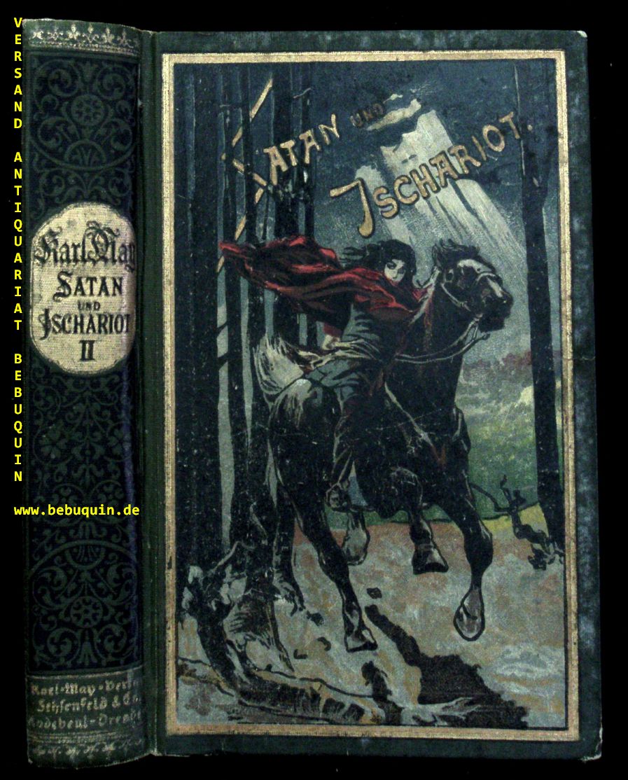 MAY, Karl: Satan und Ischariot. Reiseerzählung. II. Band. 42.– 46. Tsd. Radebeul (Karl May), (1919). 540 S. farb. ill. OHLn. (DB 41). leicht schief gelesen, Block etwas gelockert, farbstarker Einband mit goldenem Rücken. = Gesammelte Werke, Bd. 21.
