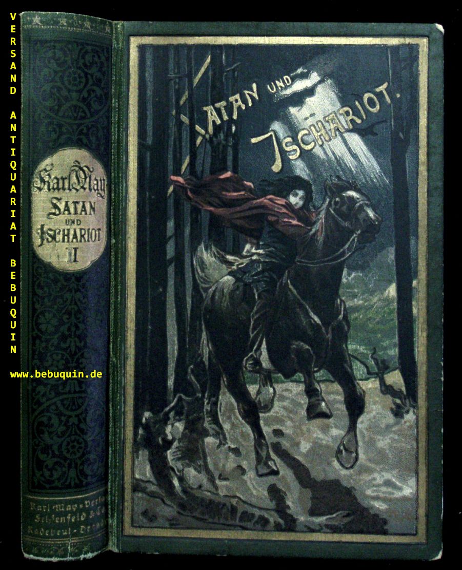 MAY, Karl: Satan und Ischariot. I. Band. Reiseerzählung. 41.– 44. Tsd. Radebeul (Karl May), (1917). 550 (2) S. farb. ill. OHLn. leicht schief gelesen, vereinzelt stockfleckig, sonst gutes Ex. mit farbstarkem Deckel und goldglänzendem Rücken. = Gesammelte Werke, Bd. 20.