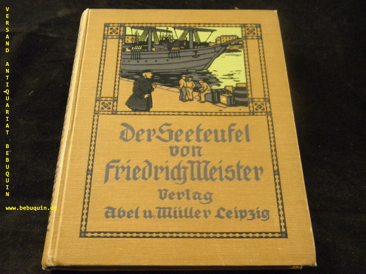 MEISTER, Friedrich: Der Seeteufel. Eine Seegeschichte. Leipzig (Abel u. Müller), (1912). 166 (2) S. mit 4 farb. Vollbildern von Carl Mickelait. farb. ill. OLn. feines Ex. EA Klotz 4551/35.