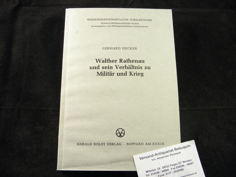 RATHENAU.– HECKER, Gerhard: Walther Rathenau und sein Verhältnis zu Militär und Krieg. Boppard (Boldt), 1983. Gr. 8°. XII, 542 S. OKart. Ordnungsgemäß aus Bundeswehrbeständen ausgesondertes Bibliotheksexemplar (Rückenschild, Stempel). = Wehrwissenschaftliche Forschungen, Bd. 30. EA.