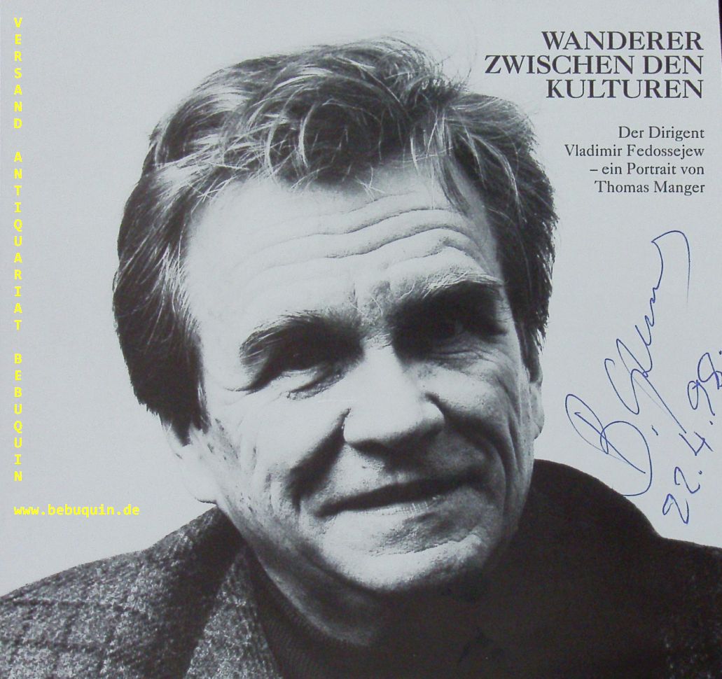 FEDOSSEJEW, Wladimir (Dirigent): eigenhändig signierte und datierte Portraitseite. München (Philharmonie), 22.4.1998. 20 x 21 cm. Karteikarte. Wladimir Iwanowitsch Fedossejew (* 5. August 1932 in Leningrad) ist ein russischer Dirigent. (Wikipedia)