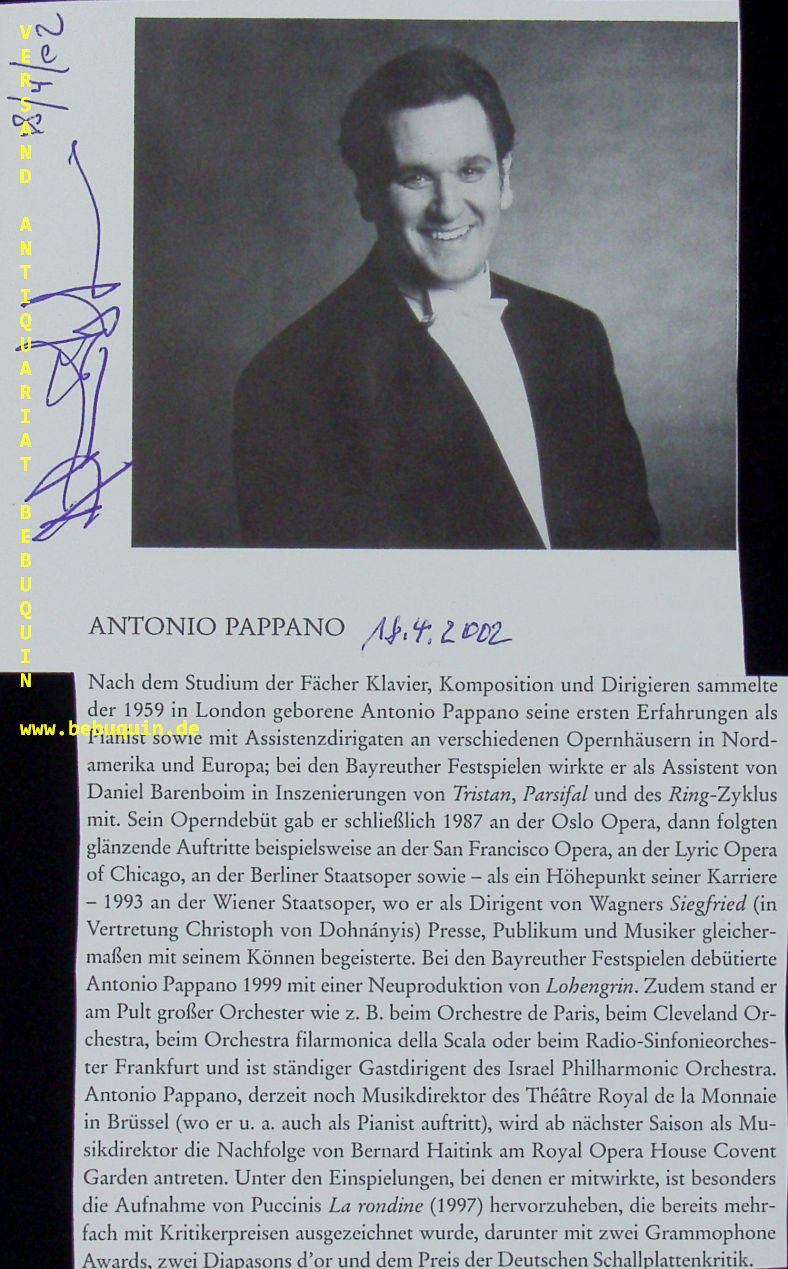 PAPPANO, eigenhändig signiertes und datiertes Portraitbild.