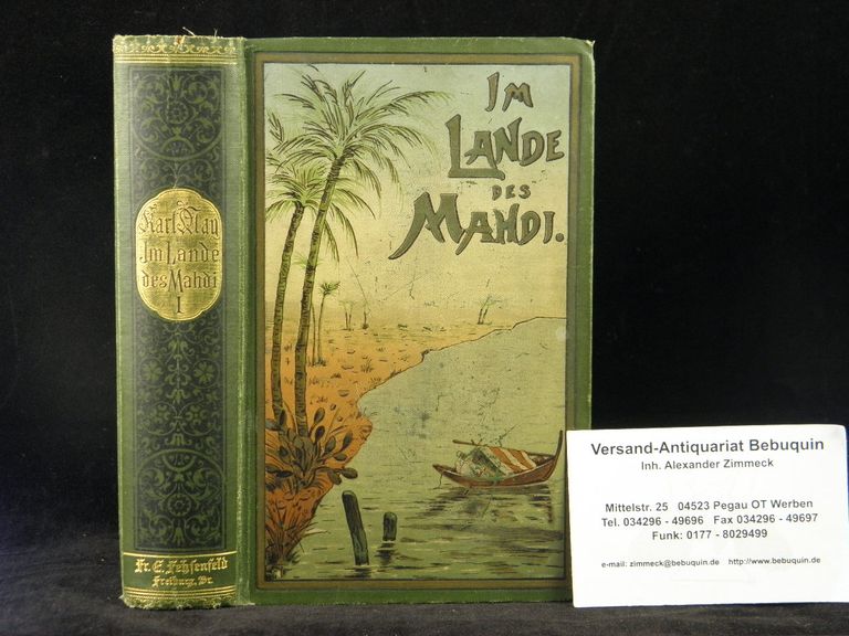 MAY, Karl: Im Lande des Mahdi. I. Band. Reiseerzählung 21.– 25. Tsd. Freiburg (Fehsenfeld), (1904). 638 (1) S. farb. ill. OLn. (DB 68) leicht schief gelesen, oberes Kapital leicht bestoßen, NaV, gutes Ex. = Karl Mays gesammelte Reiseerzählungen Band XVI. Plaul 276.5.