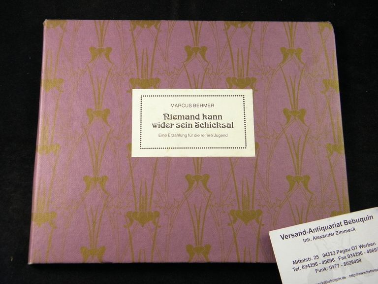 BEHMER, Marcus: Niemand kann wider sein Schicksal. Eine Erzählung für die reifere Jugend. 2. Aufl. Weimar (Nationale Forschung), 1987. Quer Gr. 8°. 7 Bl. mit Bildern in bunter Farbenpracht in OKart. + Broschüre mit 8 S. in OPbSchuber. wie neu.