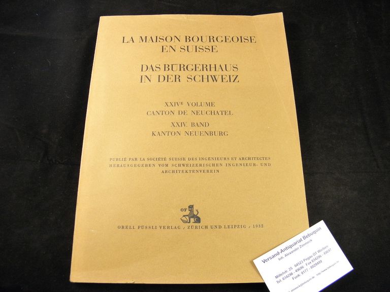 ARCHITEKTUR.– SCHWEIZERISCHER INGENIEUR- UND ARCHITEKTENVEREIN: (Hrsg.) Canton de Neuchatel. Zürich (Orell Füssli), 1932. Gr. 4°. LI S. + 130 Bildtafeln. OKart. Ecken leicht bestoßen. = Das Bürgerhaus in der Schweiz, XXIV. Band. EA. Zweisprache Ausgabe: Deutsch / Französisch