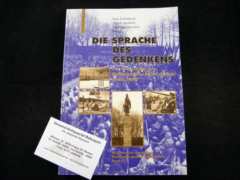 RAVENSBRÜCK.– ESCHEBACH, Insa + JACOBEIT, Sigrid + LANWERD, Susanne: (Hrsg.) Die Sprache des Gedenkens. Zur Geschichte der Gedenkstätte Ravensbrück 1945 – 1995. Berlin (Hentrich), 1999. Gr. 8°. 326 (2) S. mit zalhr. Abb. ill. OKart. gutes Ex. = Schriftenreihe der Stiftung Brandenburgische Gedenkstätten, Bd. 11. EA. Insa Eschebach (geboren 1954 in Emden) ist eine deutsche Religionswissenschaftlerin und Publizistin. Von 2005 bis 2020 leitete sie die Gedenkstätte Ravensbrück/Stiftung Brandenburgische Gedenkstätten. (Wikipedia)