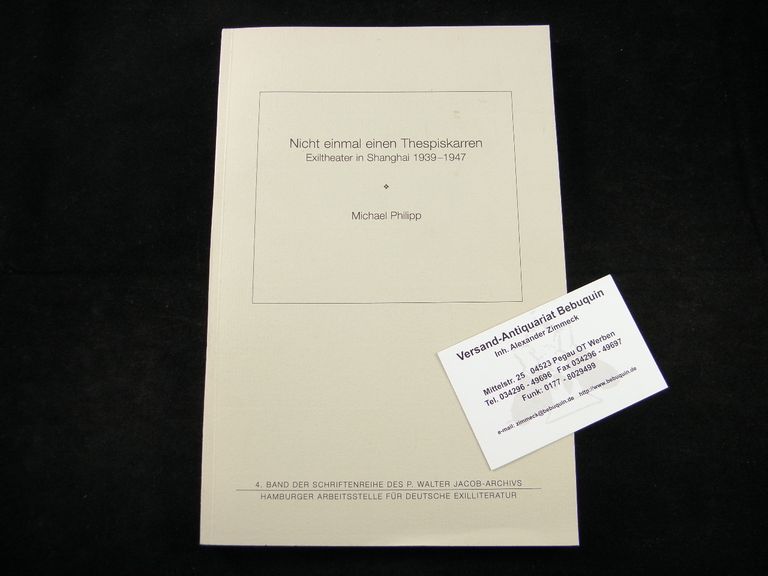 PHILIPP, Michael: Nicht einmal einen Thespiskarren. Exiltheater in Shanghai 1939 – 1947. Hamburg, 1996. Gr. 8°. 215 S. mit Abb. OKart. gutes Ex. = Schriftenreihe des P. Walter Jacob-Archivs, Heft 4. EA.