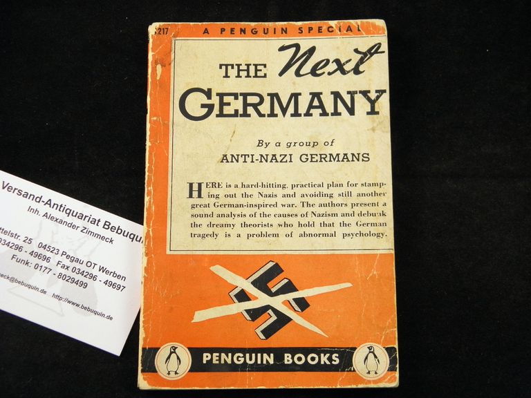 A GROUP OF ANTI-NAZI GERMANS: The Next Germany. 2nd. Ed. New York (Penguin), 1944. 144 S., 3 Bl. ill. OBr. etwas knitterig, Titelei fingerspurig. Sehr seltene 2. Auflage mit H-kreuz auf Vorderdeckel.