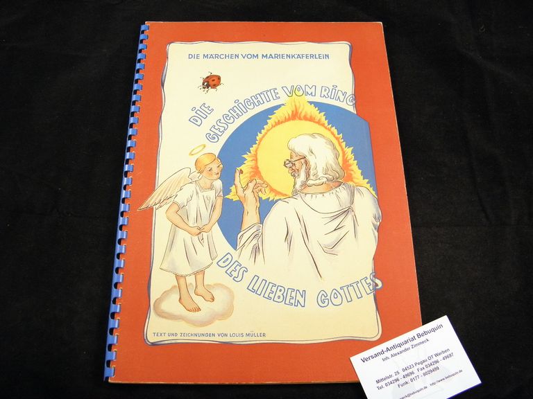 MÜLLER, Louis: Die Geschichte vom Ring des Lieben Gottes. Genf (Omega), (1943). Gr. 4°. 40 S. mit zahlr. farb. Bildern des Verfasser. farb. ill. OKart mit Ringbuchbindung. feines Ex. EA.