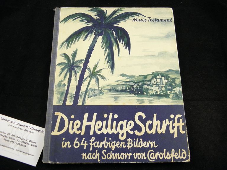 BIBEL.– SPÖRRI, Samuel: Die Heilige Schrift. 2. Band (von 2). Ein Bilderbuch für die Jugend Konstanz (Christliche), ca 1937. 4°. 32 S. mit 32 farbigen Bildern nach Schnorr von Carolsfeld koloriert von Fritz Kredel. ill. OHLn. gutes Ex. EA.
