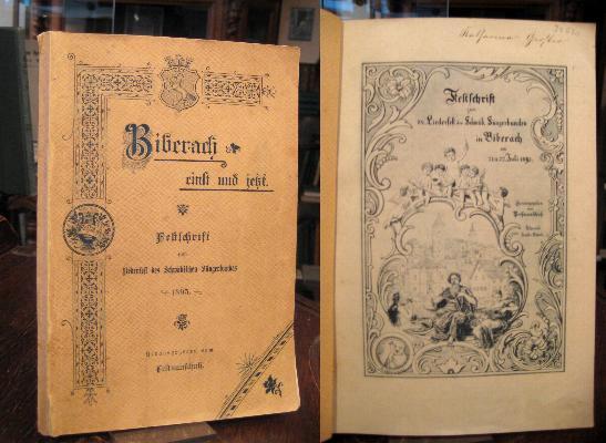 BIBERACH EINST UND JETZT.– Festschrift zum 24. Liederfest des Schwäbischen Sängerbundes in Biberach am 21. u. 22. Juli 1895. Herausgegeben vom Pressausschuß. Biberach (Heberle), 1895. 81 S. mit 13 Abb. auf 10 Lichtdrucktafeln sowie 1 Textabb. + 48 S. WerbeAnhang ill. OKart. kaum gebräunt, NaV. EA.