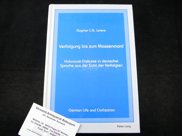 LORENZ, Dagmar C.G.: Verfolgung bis zum Massenmord. Holocaust-Diskurse in deutscher Sprache aus Sicht der Verfolgten. New York (Lang), 1992. 451 (1) S. OPb. Bleistiftkommentare auf Vorsatz und Innendeckel, wenige Bleistiftanstreichungen. = German Life and Civilization, Bd. 11. EA.