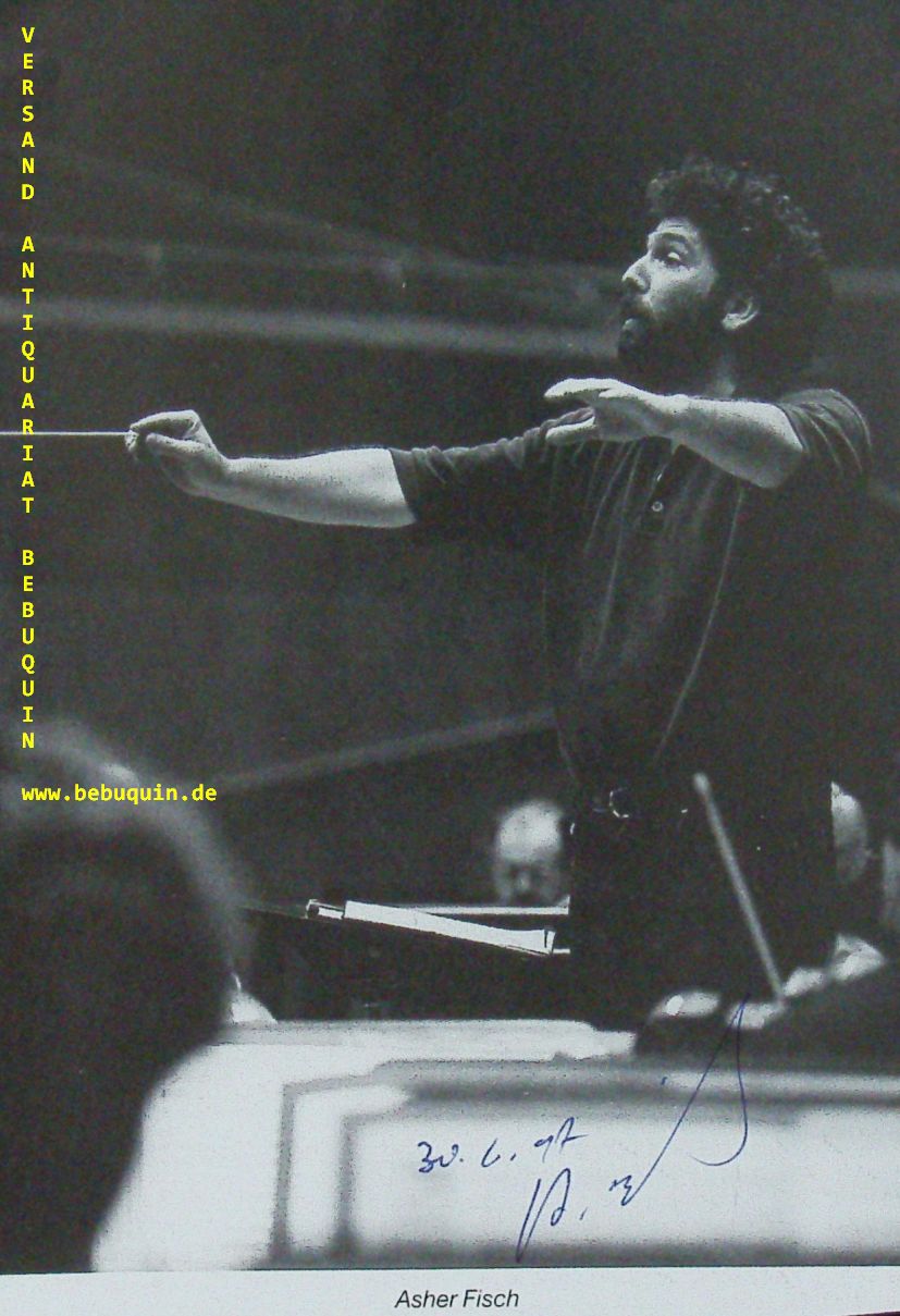 FISCH, Asher (Dirigent): eigenhändig signierte und datierte Portraitseite. München (Philharmonie), 30.6.1997. 17,5 x 12 cm. 1 Bl. Asher Fisch, geboren in Jerusalem, begann seine Karriere als Assistent von Daniel Barenboim. Anschließend wurde er musikalischer Leiter an der Wiener Volksoper und an der New Israeli Opera in Tel Aviv. Von 2007 bis 2014 war er Principal Guest Conductor an der Seattle Opera, seit 2014 hat er die musikalische Leitung des West Australian Symphony Orchestra inne. Gastengagements führten ihn u. a. an die Opernhäuser von New York, London, Mailand, Neapel, Turin, Berlin, Dresden, Hamburg, Paris, Chicago und Los Angeles. Neben seinen Opernengagements trat er mit Orchestern wie dem Israel Philharmonic Orchestra, den Münchner Philharmonikern, dem Mozarteum Orchester Salzburg, dem NDR Elbphilharmonie Orchester Hamburg und dem Chicago Symphony Orchestra auf. (Staatsoper)