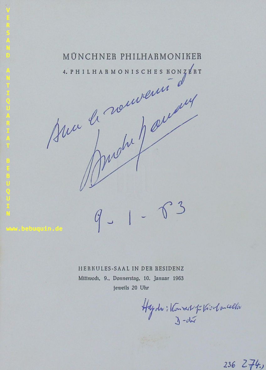 NAVARRA, André (Cellist): eigenhändig signierte und datierte Programmseite: Avec le souvenir d’. München, 9.1.1963. 21 x 15 cm. 1 Bl. André Navarra (* 13. Oktober 1911 in Biarritz; † 31. Juli 1988 in Siena) war ein französischer Cellist, der zusammen mit Pierre Fournier, Paul Tortelier und Maurice Gendron die große französische Cellotradition prägte. (Wikipedia)