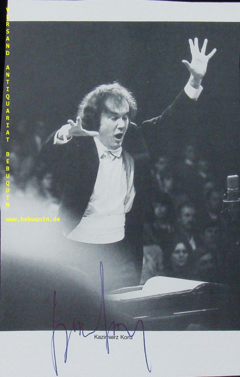KORD, Kazimierz (Dirigent): eigenhändig signierte Portraitseite. München (Kongresssaal), 23.11.1990. 19 x 12 cm. 1 Bl. Kazimierz Kord (born 18 November 1930) is a Polish conductor. Between 1949 and 1955, he studied piano at the Leningrad Conservatory. He also studied at the Academy of Music in Kraków. (Wikipedia)