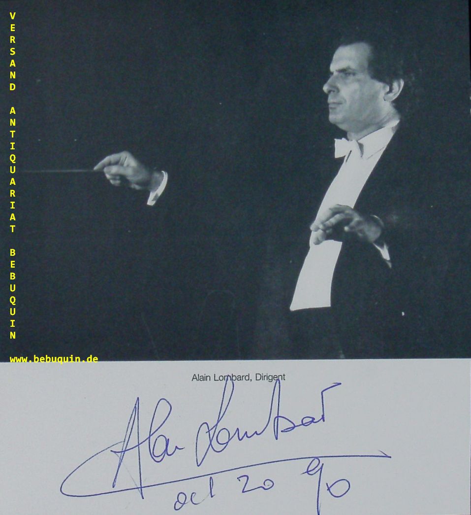 LOMBARD, Alain (Dirigent): eigenhändig signierte und datierte Portraitseite. München 20.10.1990. 16 x 14,5 cm. 1 Bl. Alain Lombard (* 4. Oktober 1940 in Paris) ist ein französischer Dirigent. (Wikipedia)
