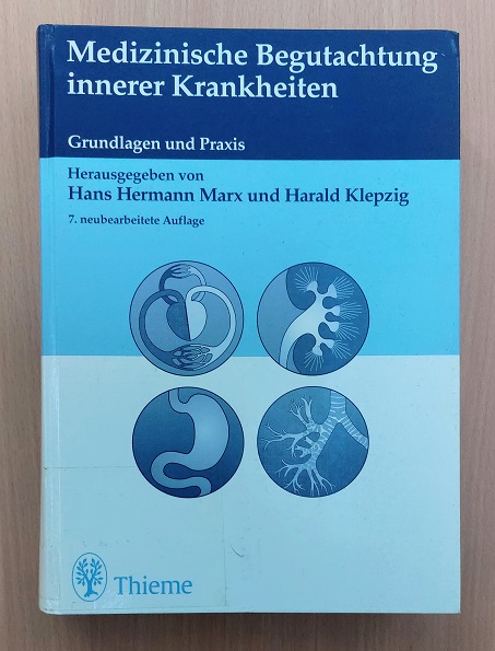 MEDIZIN.– MARX, Hans Hermann + KLEPZIG, Harald: Medizinische Begutachtung innerer Krankheiten. Grundlagen und Praxis. 7. neu bearb. Aufl. Stuttgart (Thieme), 1997. 4°. XX, 575 S. mit 8 Abb. und 97 Tabellen. ill. OKart. Ordnungsgemäß aus Bundeswehrbeständen ausgesondertes Bibliotheksexemplar (Rückenschild, Stempel). wichtige, seltene und hilfreiche Publikation.