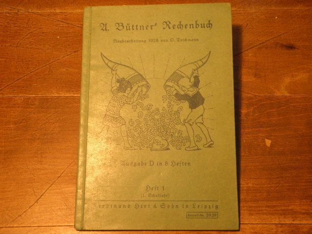 RECHENBUCH.– TEICHMANN, O.: (Bearb.) A. Büttner’s Rechenbuch. Ausgabe D. Heft 1. (1. Schuljahr). Leipzig (Hirt), 1928. 32 S. mit zahlr. Bildern von L. Burger. ill. OKart mit aufklappbarem Deckel. feines Ex.