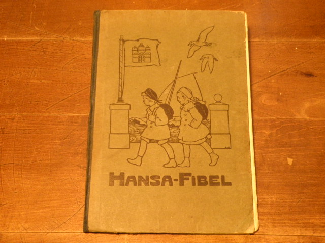ZIMMERMANN, Otto: Hansa – Fibel. Erstes Lesebuch für Hamburger Kinder. 4. Aufl. Ausgabe A1. Hamburg (Abenblatt), 1921. VIII, 104 S. mit über 100 farbigen Bildern von Eugen Ostwald. ill. OHLn. Buchblock gelockert und an verschiedenen Stellen mit Papierstreifen stabilisiert, verschiedene Einrisse ebenso mit Papierstreifen (am Rand) überklebt und an zwei Stellen im Text mit Tesa überklebt. Die Hansa-Fibel ist ein „Meilenstein deutscher Fibelgeschichte … Sie hat Figuren, Typen, Motive und Szenen geschaffen, die immer wieder aufgegriffen und variiert worden sind“ (May/ Schweitzer). Obwohl für Hamburger Schulen gedacht, war sie bald in ganz Deutschland in Gebrauch. Teistler 2515.4.