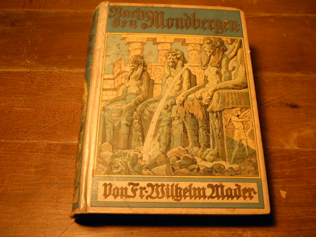 MADER, Friedrich Wilhelm: Nach den Mondbergen. Eine abenteuerliche Reise nach den rätselhaften Quellen des Nils. 2. verbesserte und vermehrte Aufl. Stuttgart (Union), 1920. 350 (2) S. mit 1 Farbtafel, 8 Tondruckbildern sowie 4 Karten. farb. ill. OPb. etwas schiefgelesen, Rückenkanten mit Klarsichtstreifen fixiert, Rückdeckel und innen vereinzelt braunfleckig.