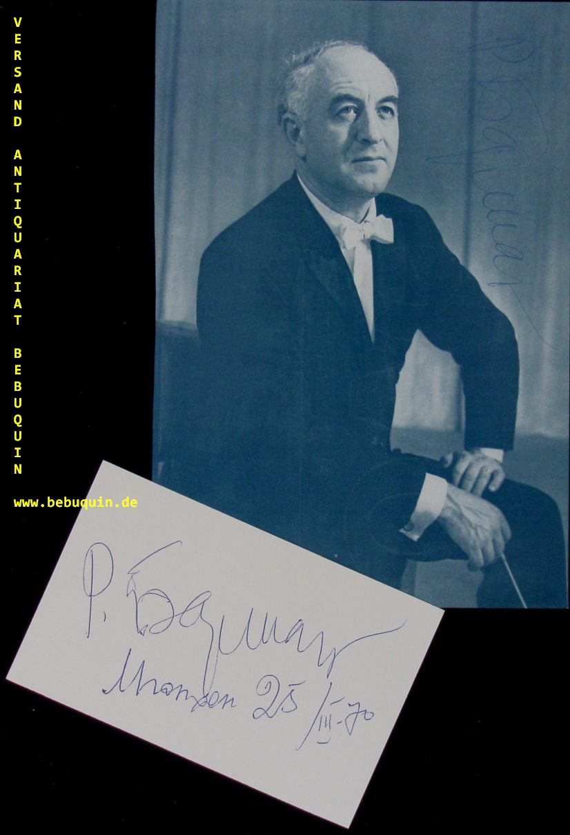 BARSCHAI, Rudolf (Dirigent): eigenhändig signierte und datierte Autogrammkarten + eigenhändig signierte Portraitseite. München, 25.3.1970. 8 x 12,5 cm. Karteikarte + 3 Bl. Rudolf Borissowitsch Barschai (* 28. September 1924 in der Staniza Labinskaja; † 2. November 2010 in Basel) war ein russischer Dirigent und Violaspieler. (Wikipedia)