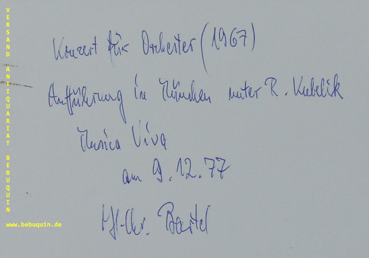 BARTEL, eigenhändig signierte und datierte Autogrammkarte: Konzert für Orcheste…