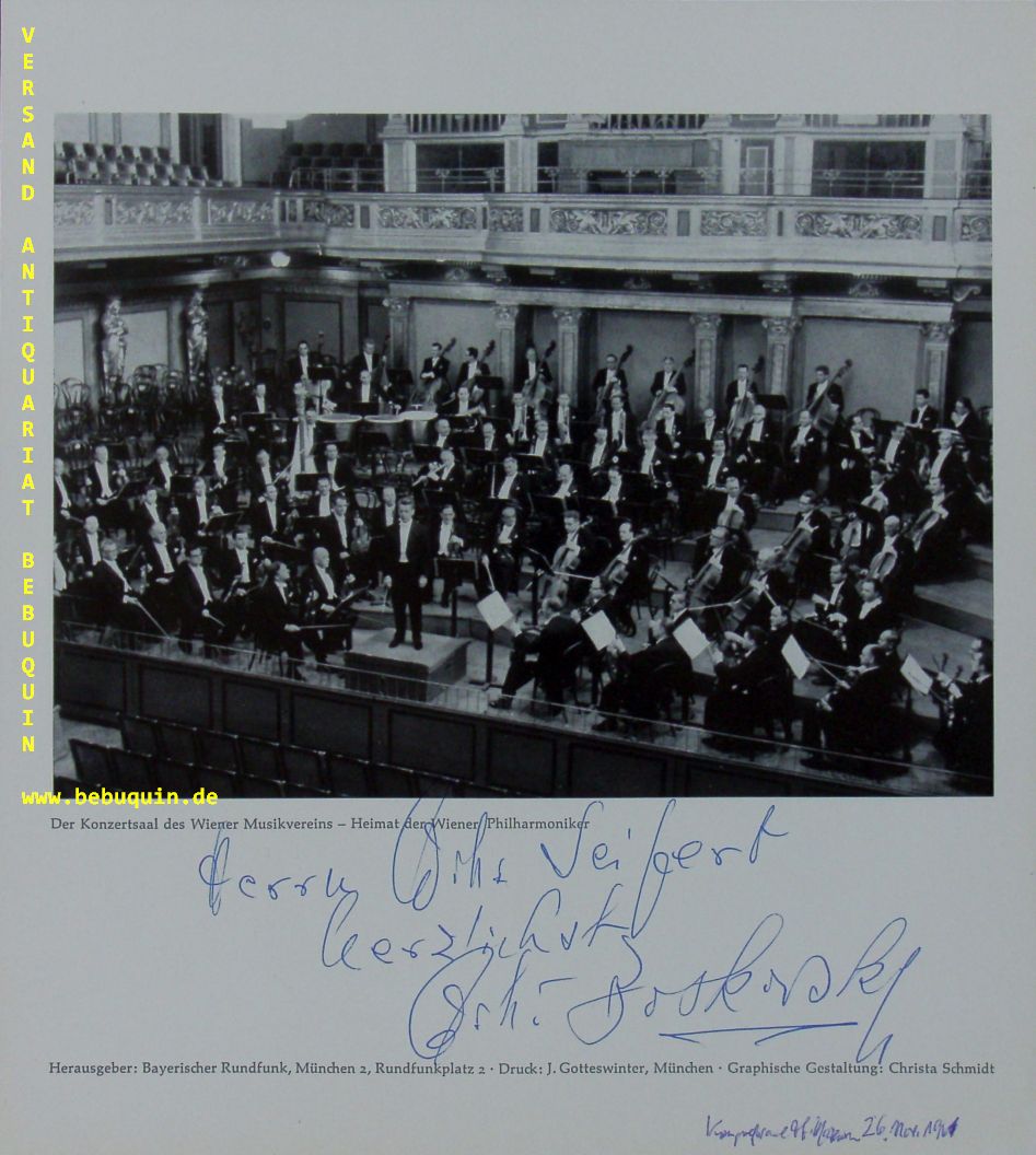BOSKOVSKY, Willi (Dirigent, Violinist): eigenhändig signiertes Orchesterportrait: Herrn Willi Seifert herzlichst Willi Boskovsky. Wien (Musikverein), 26.11.1961. 23 x 21 cm. 1 Bl. Willi Boskovsky (* 16. Juni 1909 in Wien; † 21. April 1991 in Visp) war ein österreichischer Violinist und Dirigent. (Wikipedia)