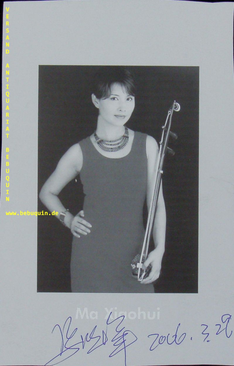 XIAOHUI, Ma (Komponistin): eigenhändig signierte und datierte Portraitseite. München (Philharmonie), 29.3.2006. 20 x 13 cm. 1 Bl. Ma Xiaohui is an erhu player and composer from Shanghai, People’s Republic of China. She is one China’s few first-class traditional artists embracing an international career. (Wikipedia)