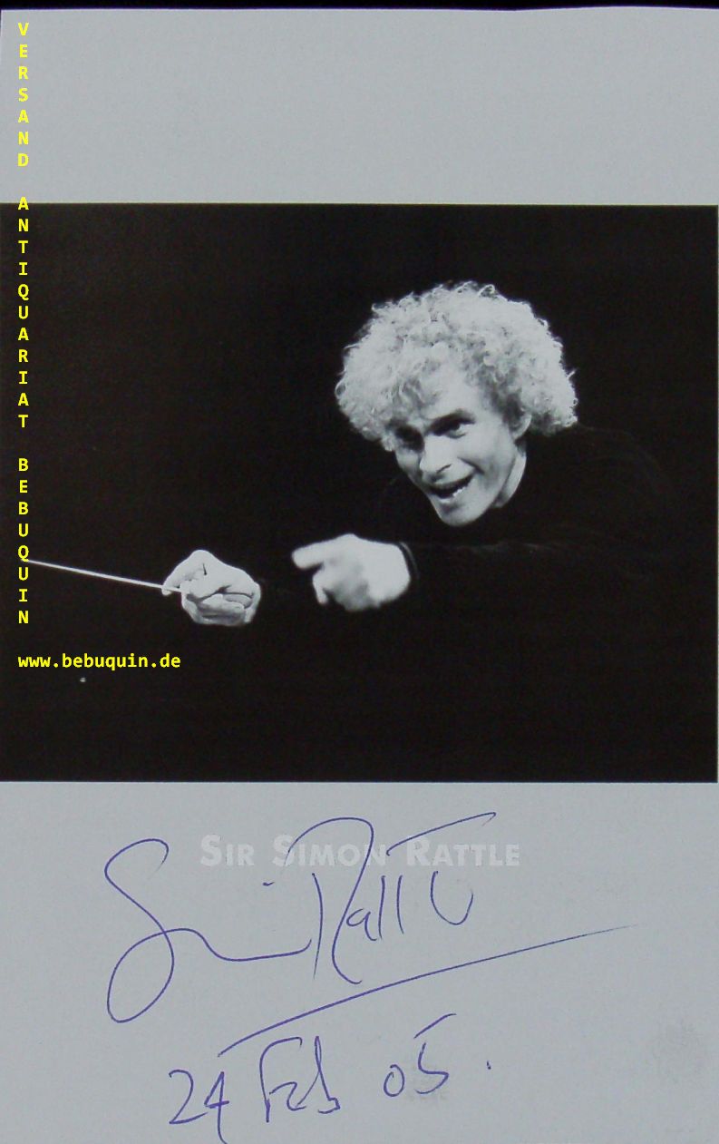 RATTLE, Simon (Dirigent): eigenhändig signierte und datierte Portraitseite. München (Philharmonie), 24.2.2005. 19,5 x 12,5 cm. 1 Bl. Sir Simon Denis Rattle (* 19. Januar 1955 in Liverpool) ist ein britischer Dirigent, war von 2002 bis 2018 Chefdirigent der Berliner Philharmoniker und ist seit 2017 Chef beim London Symphony Orchestra.(Wikipedia)