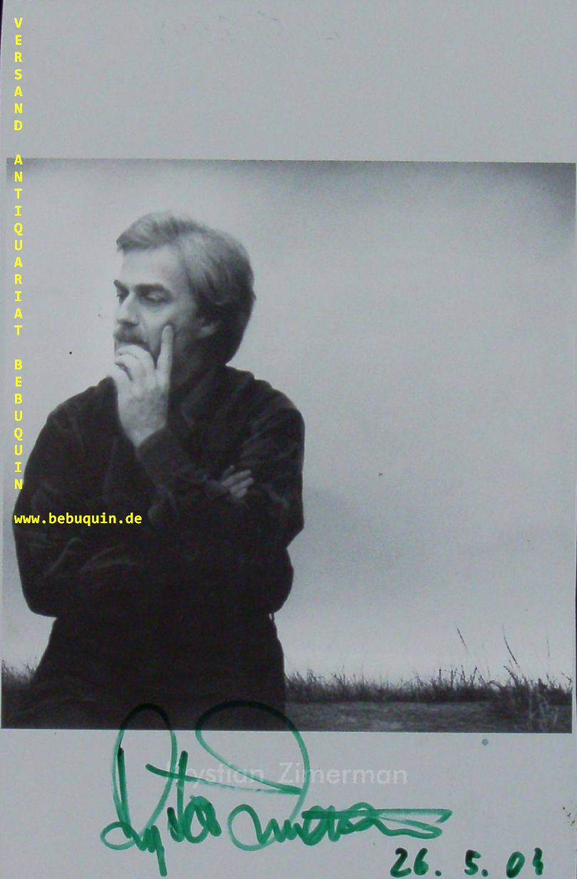 ZIMERMAN, Krystian (Pianist): eigenhändig mit Grünstift signierte und datierte Portraitseite München (Philharmonie), 26.5.2004. 19 x 13 cm. 1 Bl. Krystian Zimerman (* 5. Dezember 1956 in Zabrze, Polen) ist ein polnischer Pianist. Seit 1996 lebt Krystian Zimerman mit seiner Familie in Basel, wo er eine Meisterklasse an der Musikhochschule Basel leitet. Im April 2009 sorgte er für einen Eklat während eines Konzerts in den Vereinigten Staaten, als er von der Bühne in Bezug auf den amerikanischen Raketenschild in Polen forderte: Get your hands off my country („Lassen Sie Ihre Hände von meinem Land“). Diese Äußerung war möglicherweise auch persönlich motiviert, da Zimermans Steinway-Flügel acht Jahre zuvor, kurz nach den Terroranschlägen des 11. September bei der Einreise in die USA wegen Terrorverdachts vom Zoll konfisziert und vernichtet wurde. (Wikipedia)